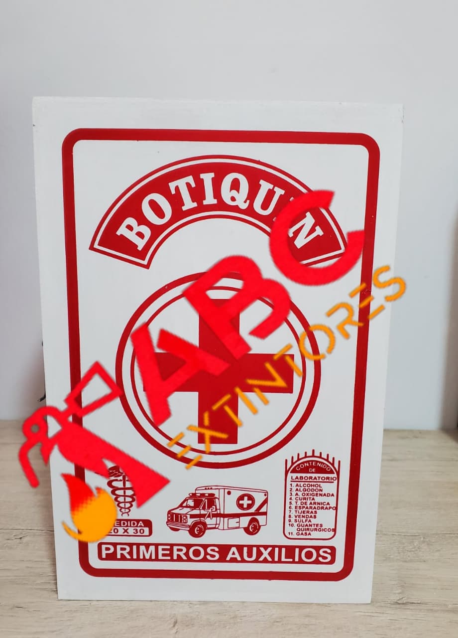 El botiquín cuenta con señal visible de “Primeros Auxilios”, lo que permite: